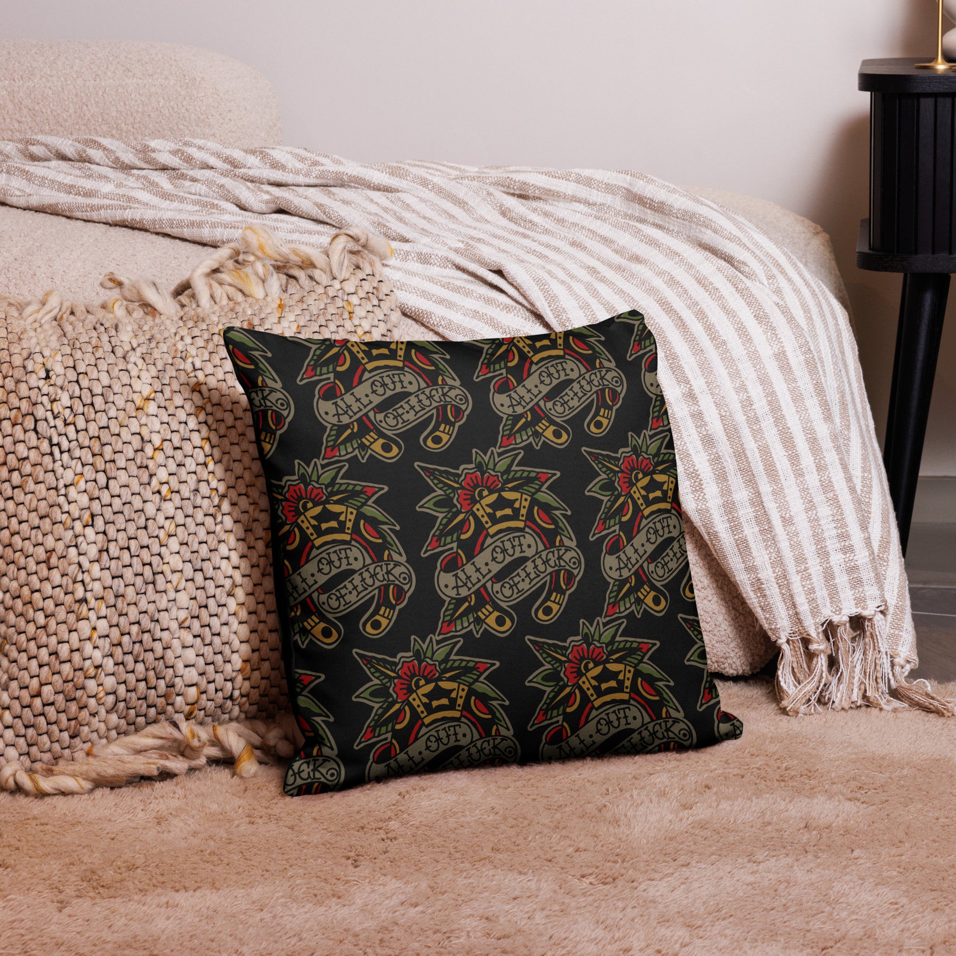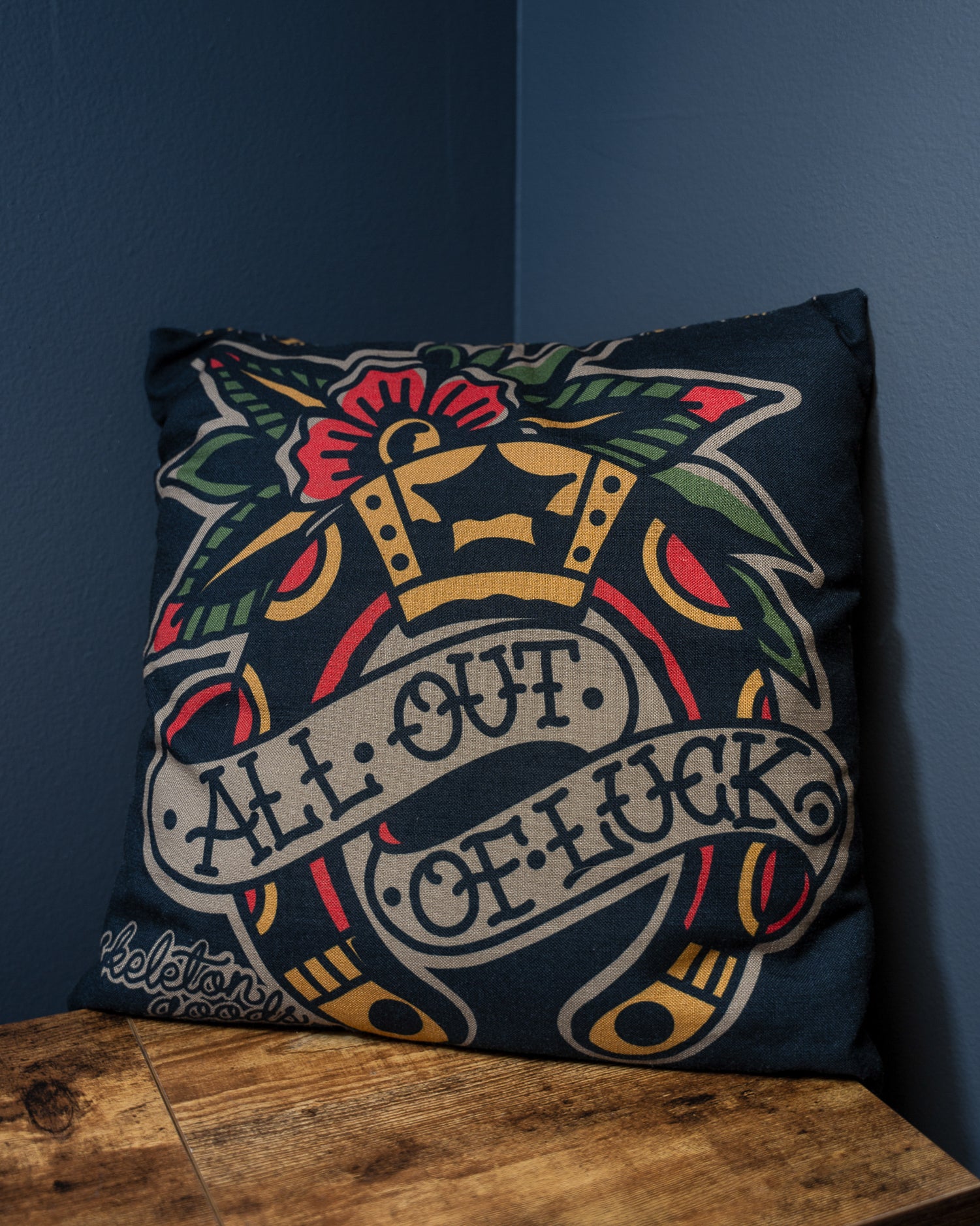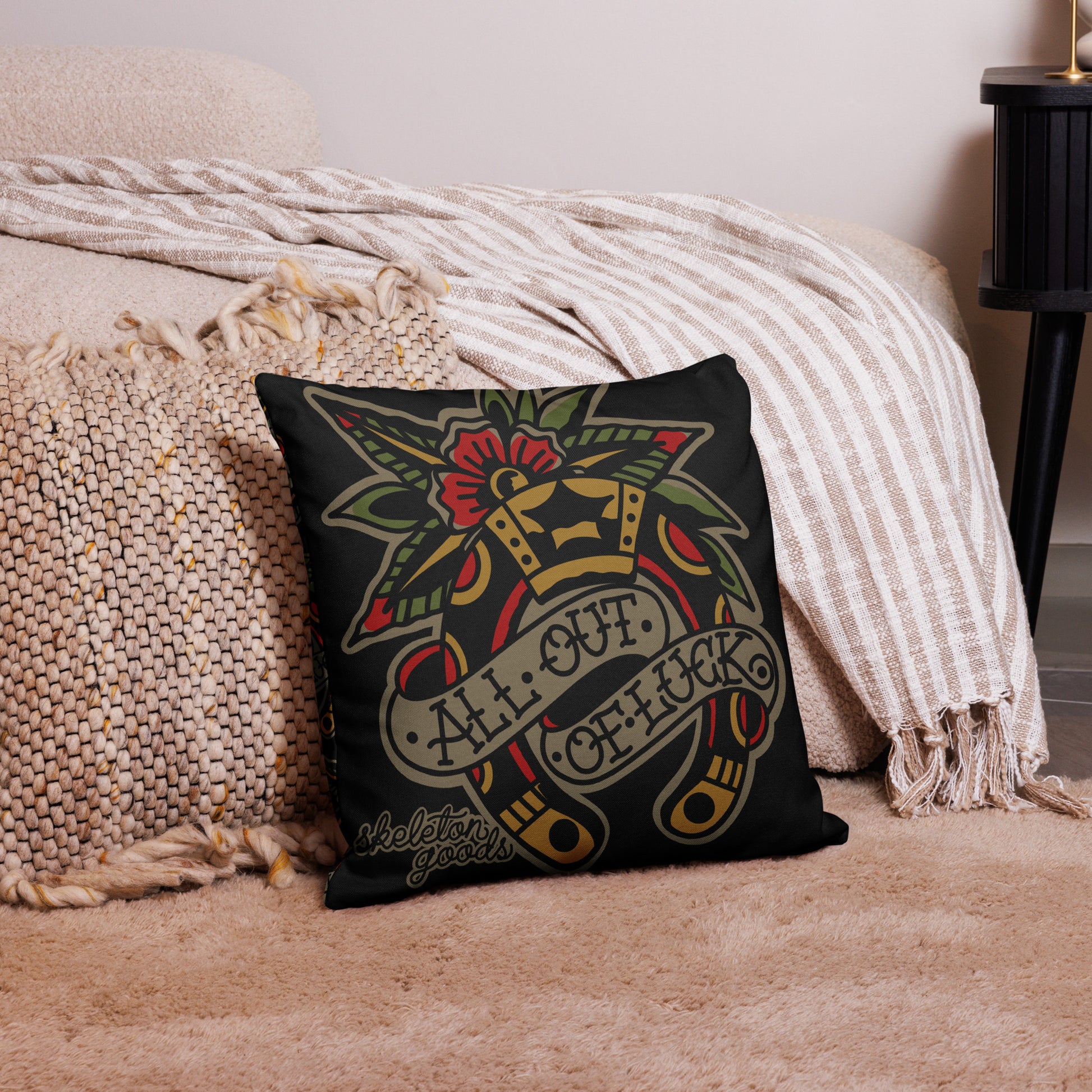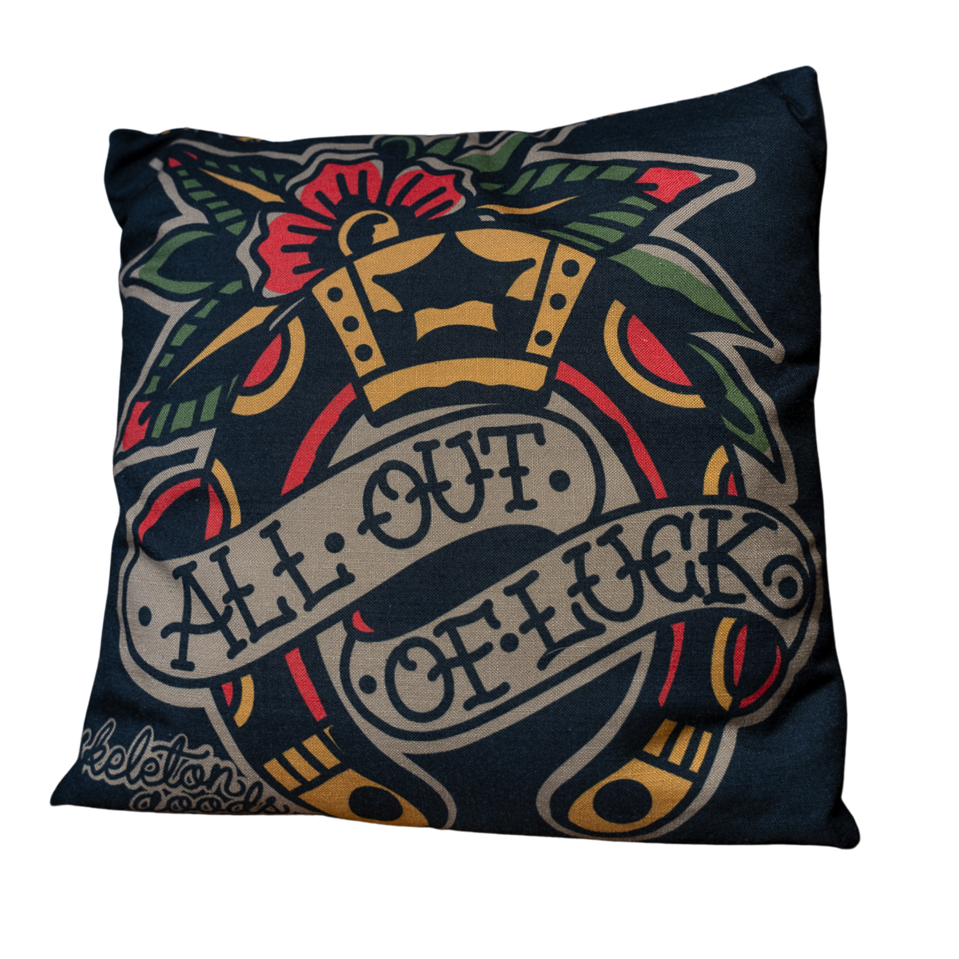 Enhance your pillow collection with the addition of a classic horseshoe design for extra coziness! The All Out of Luck Throw Pillow is available in 18"x 18" and features a double-sided print on a soft linen-like material.