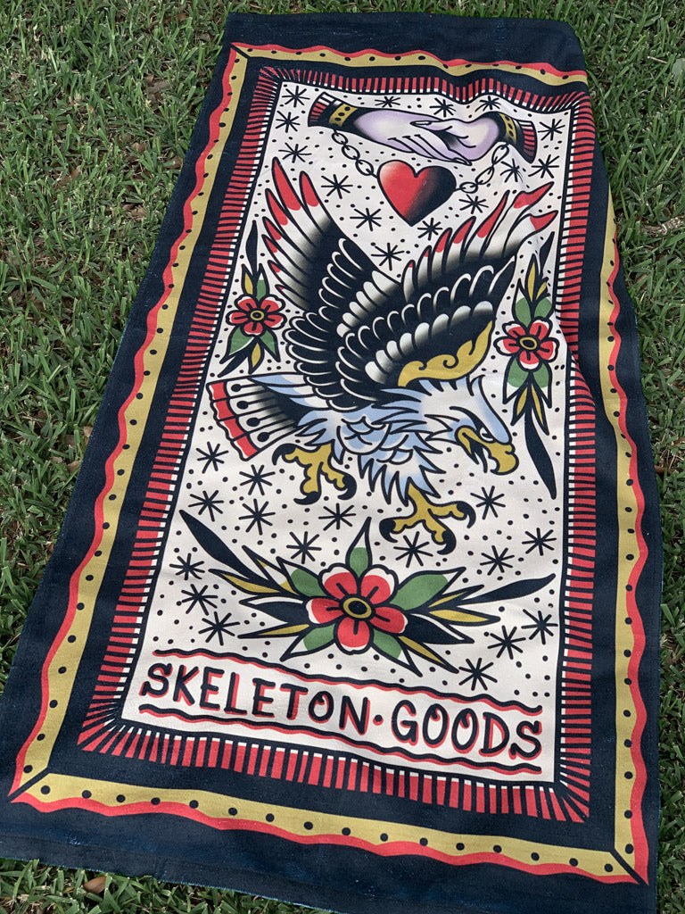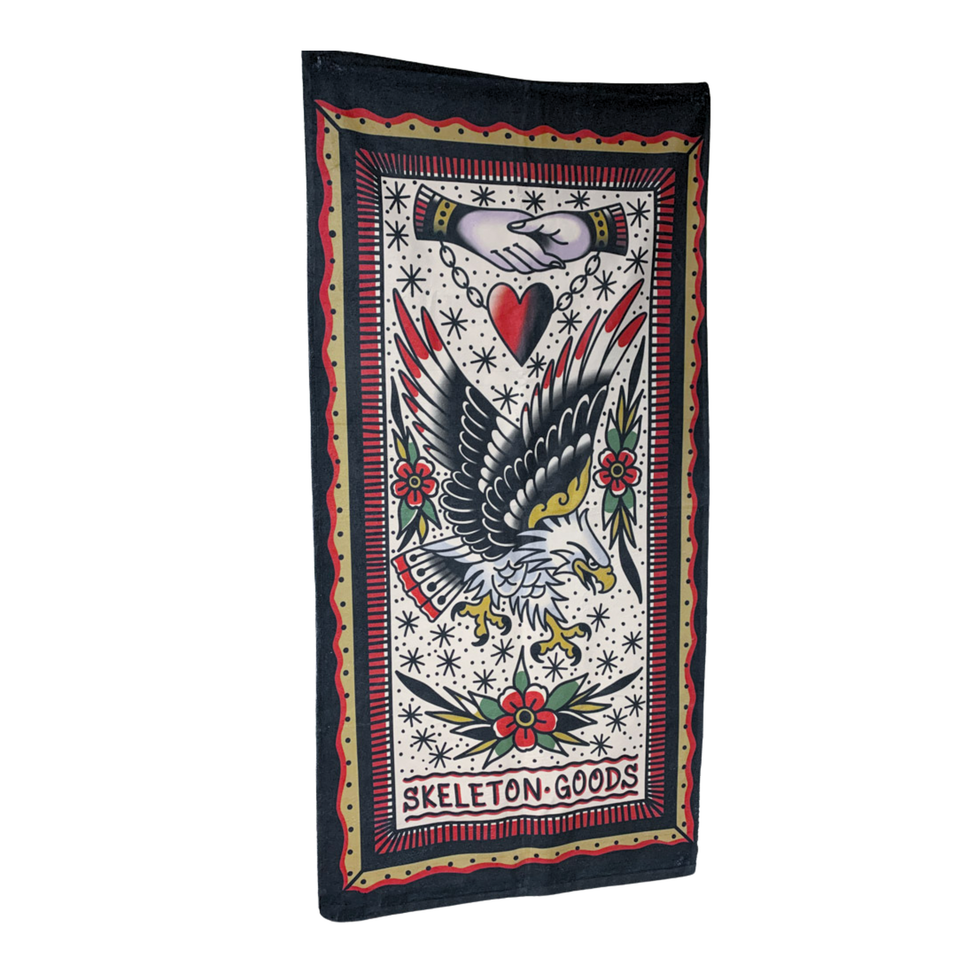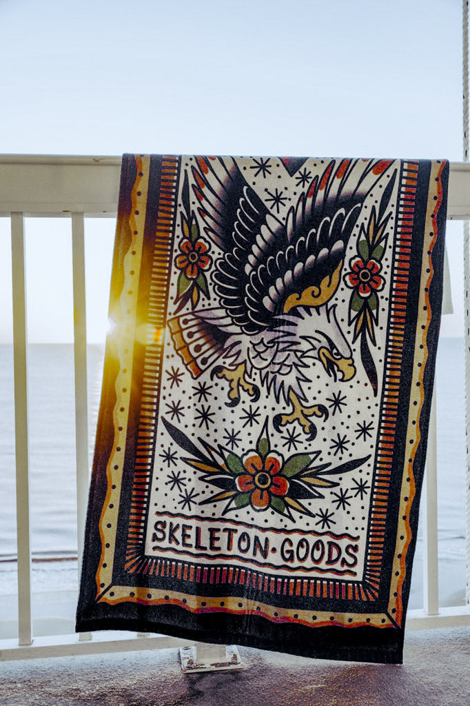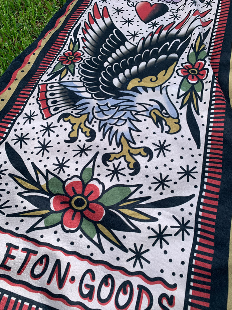 Wrap up in luxury with our exceptional beach towels! This is not your average towel, with its unparalleled softness and stunning traditional tattoo design. Our towels have been intentionally selected for their plush feel and durability, perfect for drying off and cozying up on your day by the water!
