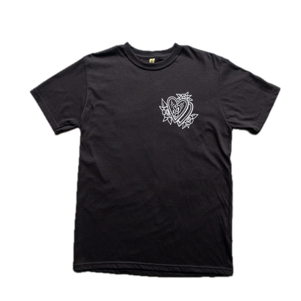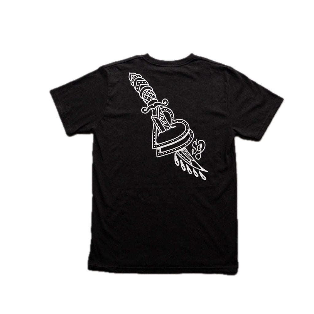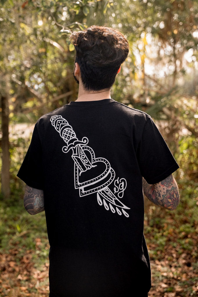 Introducing our timeless Broken Heart Tee adorned with a classic hearts & dagger tattoo design. Crafted from 100% Cotton, this tee boasts a soft yet heavyweight fabric, ensuring both comfort and durability.