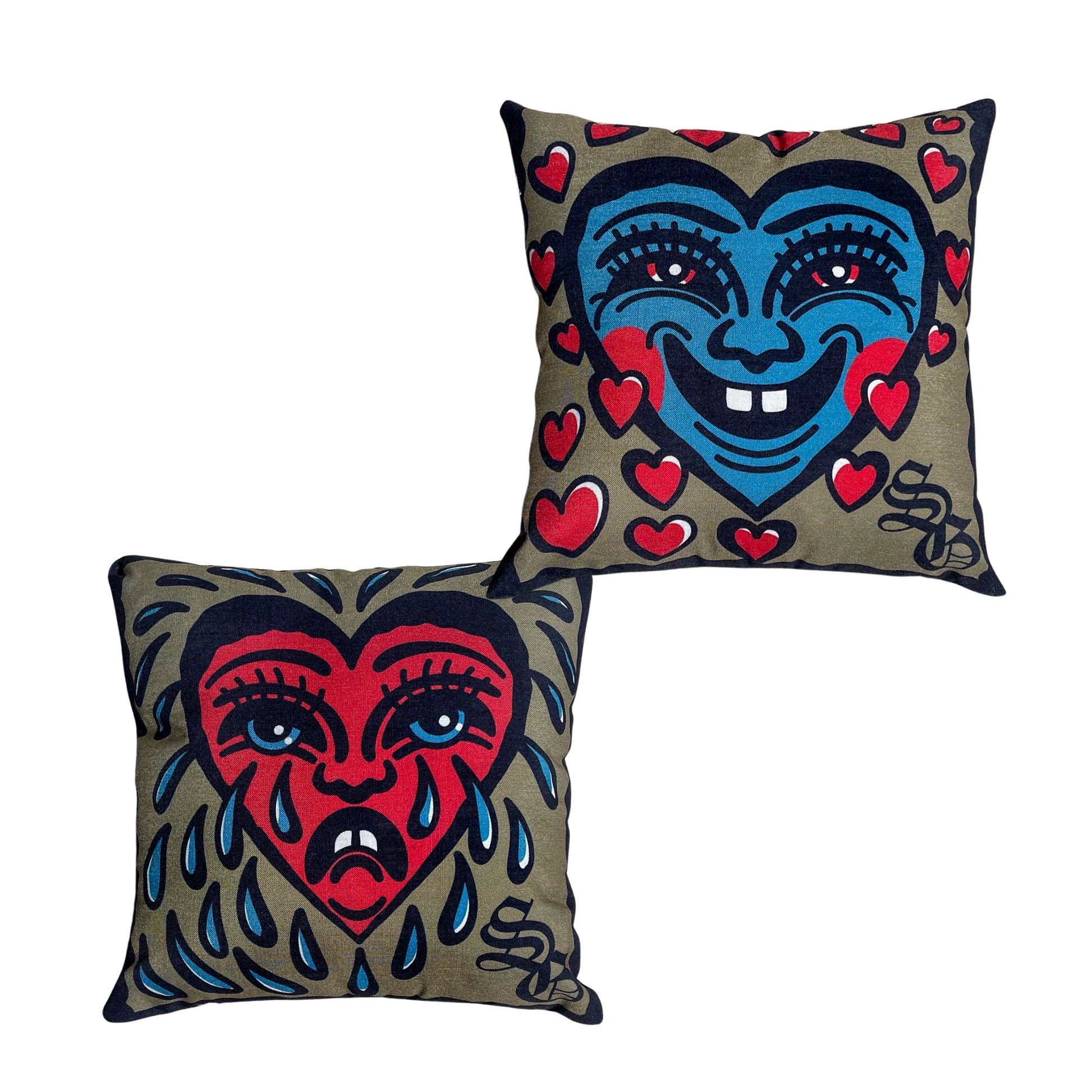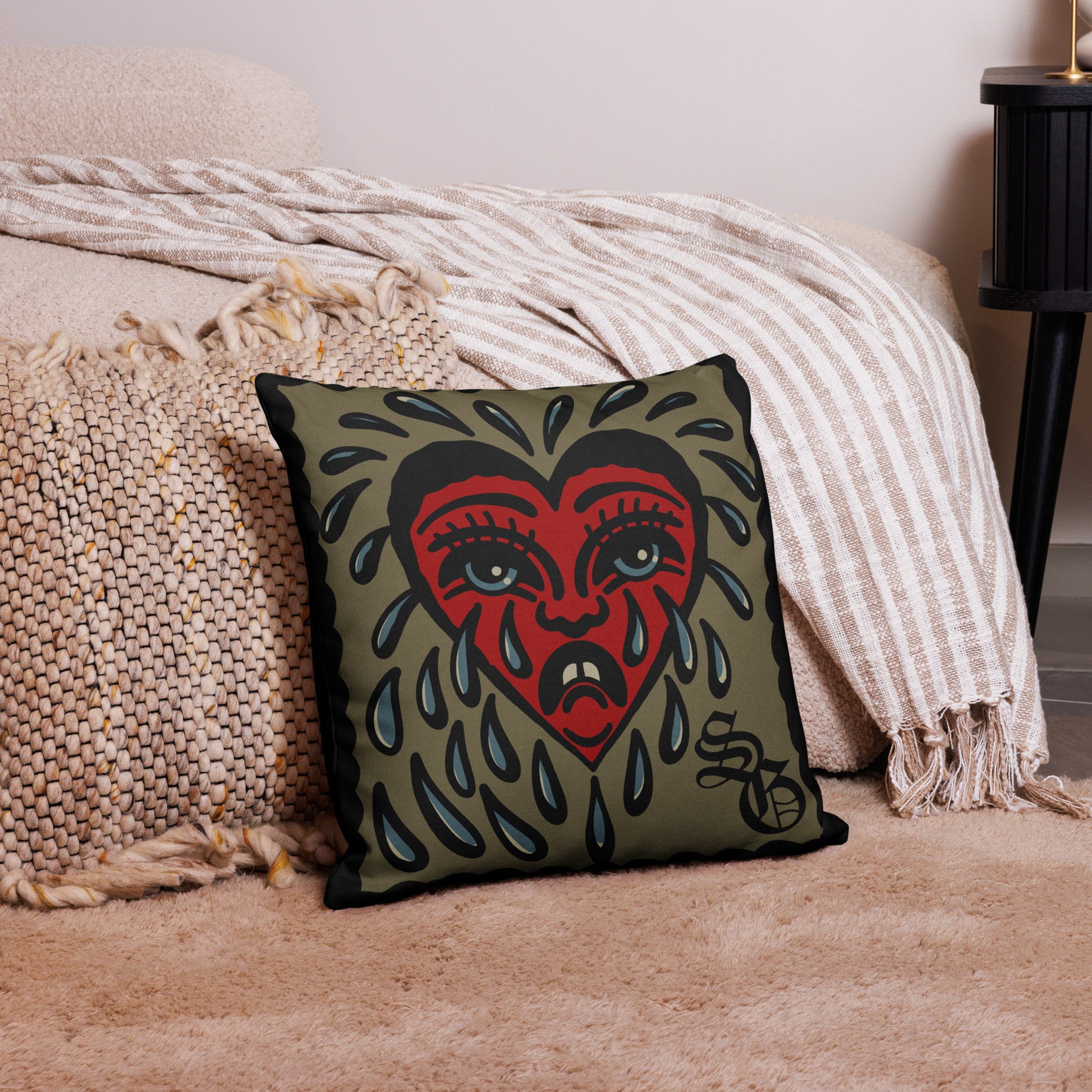 Our versatile Cry Now Throw Pillow features a captivating two-sided design. Elevate your living space with this stylish accent piece that offers twice the charm. Each side showcases a heart, one happy, and one sad, allowing you to effortlessly switch up your decor to suit your aesthetic or mood.