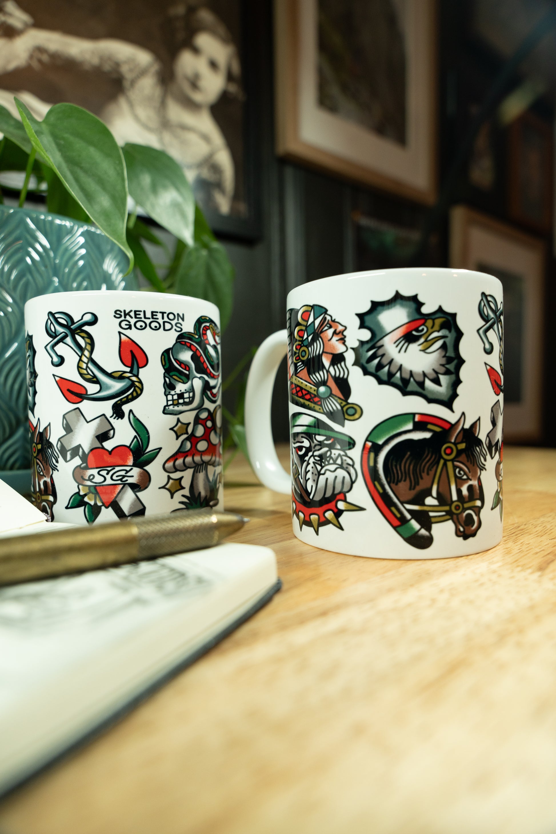 Unleash your inner artist with a coffee mug that breaks free from traditional design. Inspired by classic tattoo flash art, this ceramic masterpiece transforms your morning ritual into a statement of personal style.