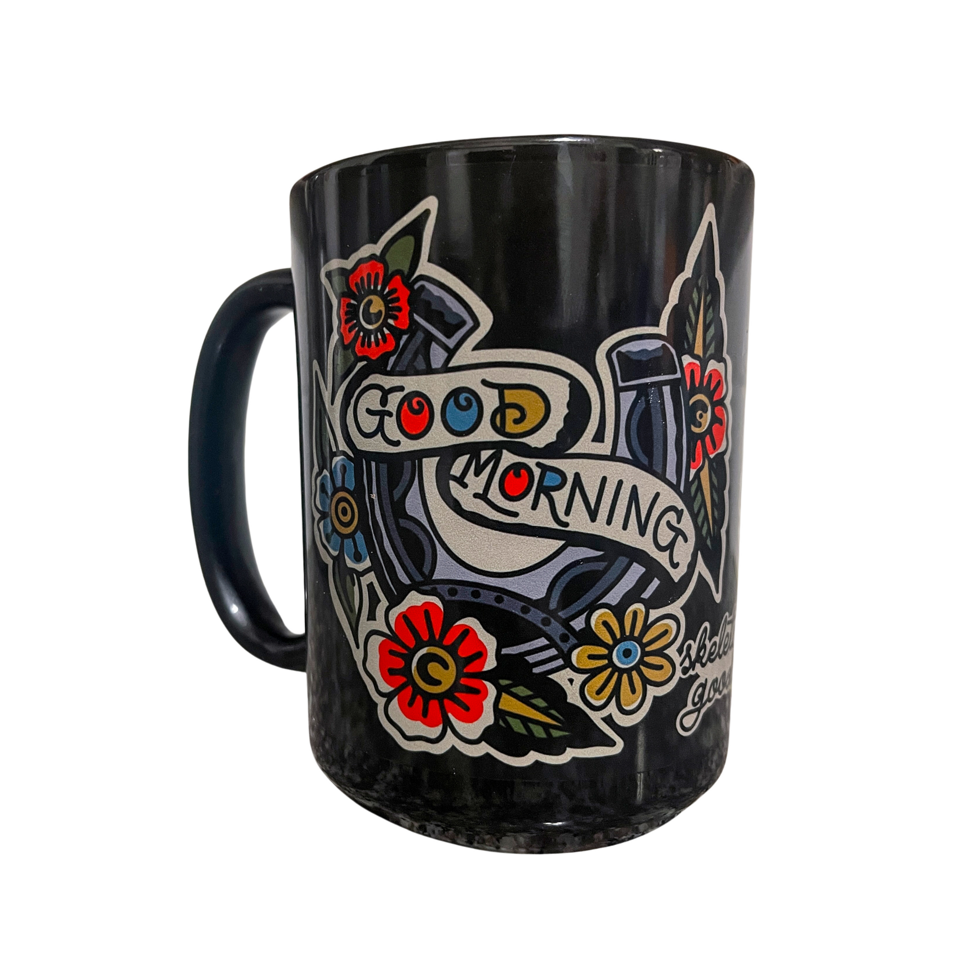 Our exquisitely crafted mugs are the epitome of style and functionality. Its generous capacity ensures ample room for your favorite hot beverages, while the ergonomic handle provides a comfortable grip for effortless enjoyment. Elevate your drinking experience and add a touch of personal tattoo style to your kitchen with this all over design!