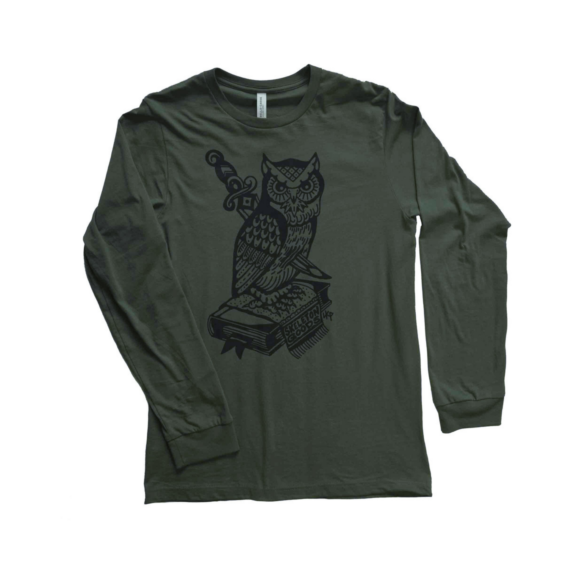 Indulge in unparalleled comfort and style with our soft lightweight long sleeve. The olive tee serves as the perfect canvas for our timeless tattoo design, showcasing the revered symbol of wisdom and knowledge: the owl. Elevate your look with a touch of symbolism and timeless elegance with our Owl Long Sleeve Tee.
