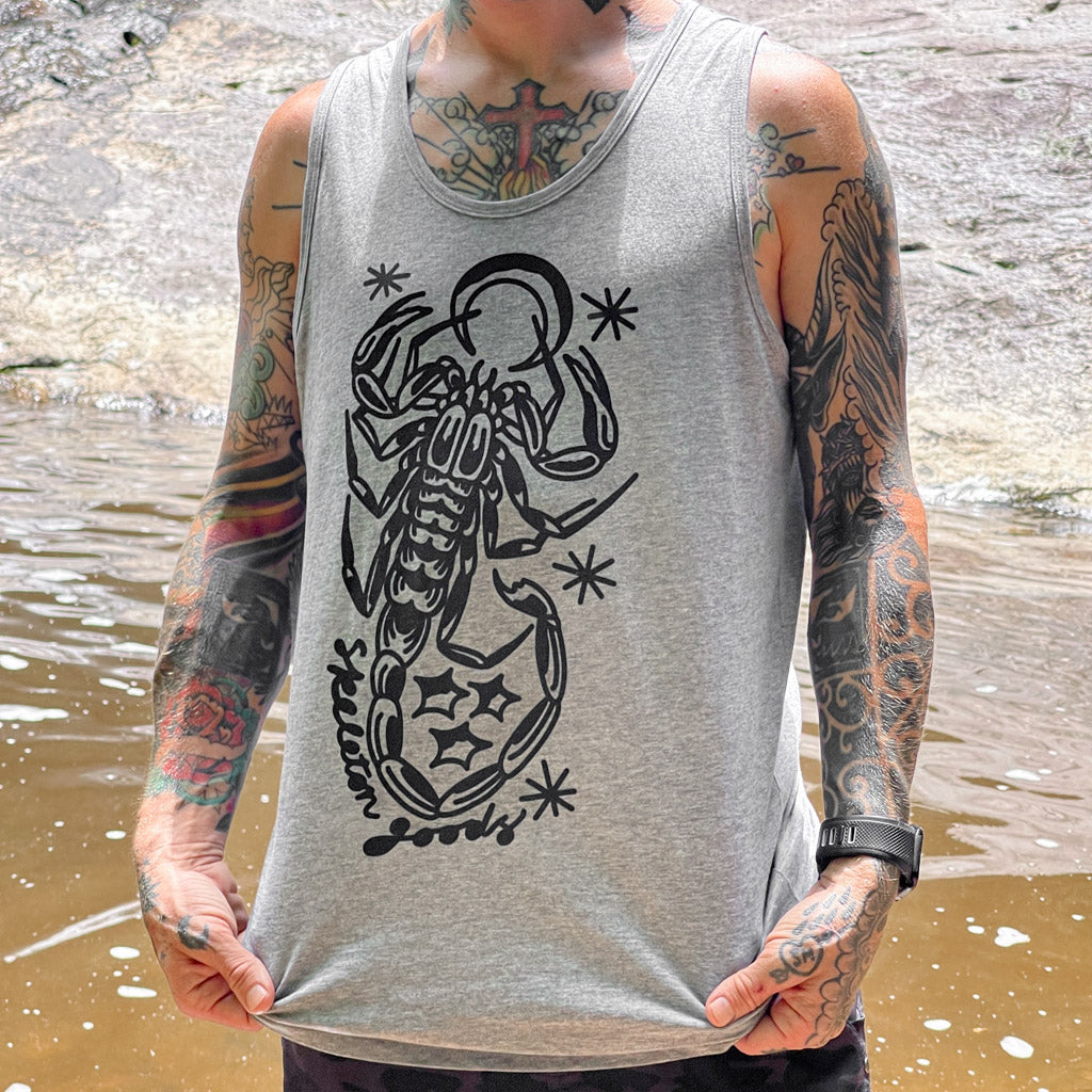 Stylish and versatile, our tank tops are the perfect addition to your wardrobe for warm weather days. Crafted from premium materials, this tank offers a comfortable and breathable fit that keeps you cool all day long. Whether you're hitting the gym, running errands, or lounging at home, our Scorpion Tank Top provides the perfect combination of comfort and style for any occasion.