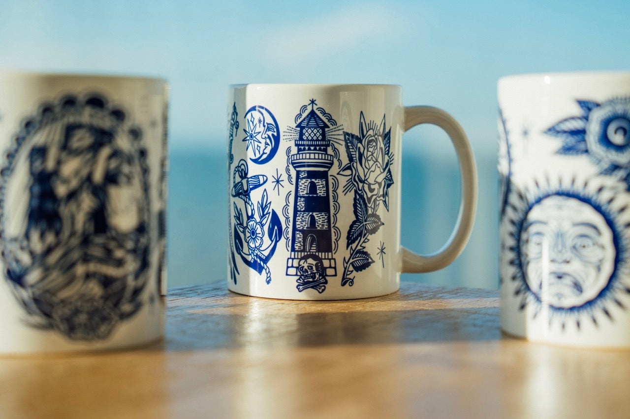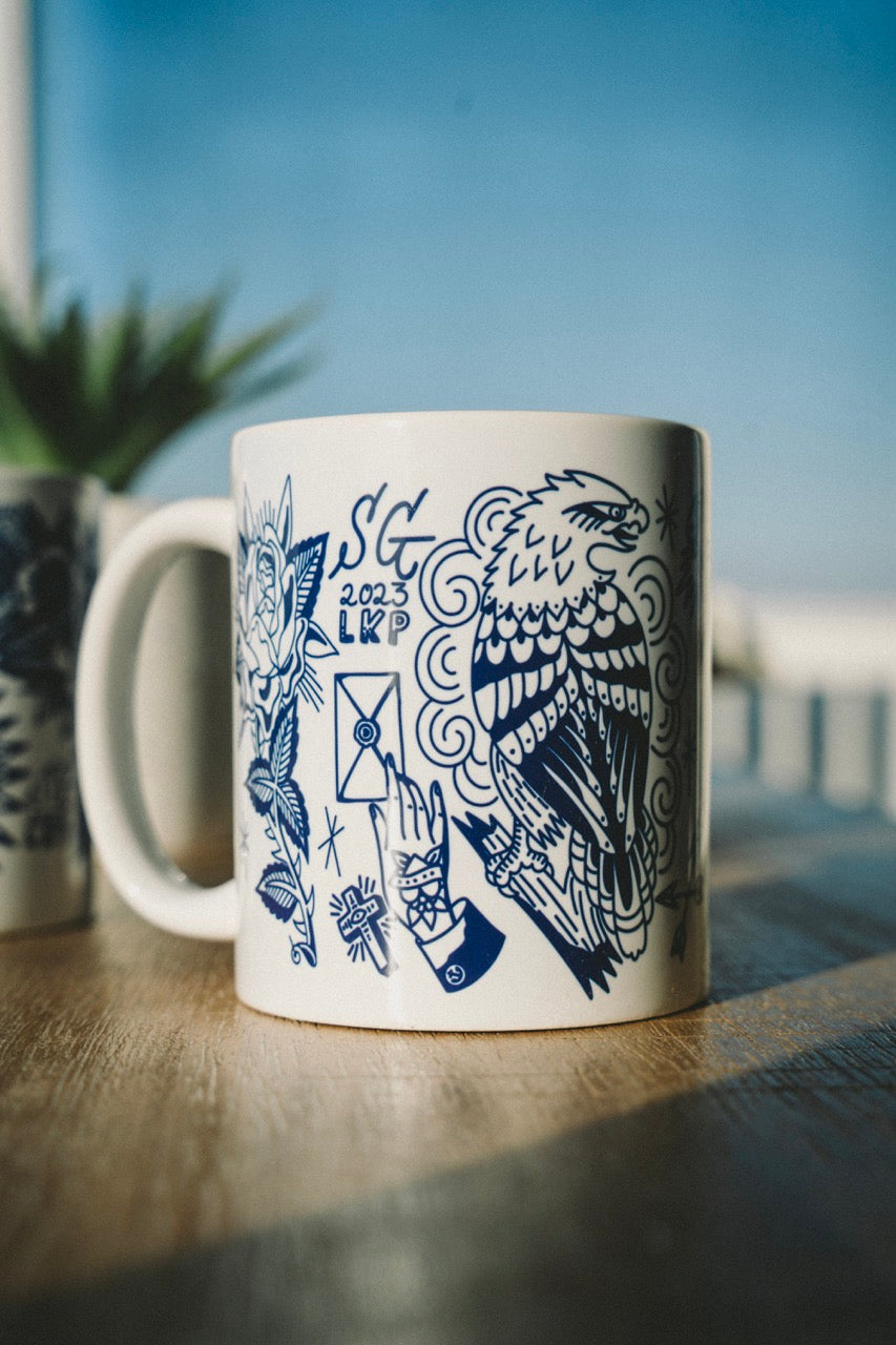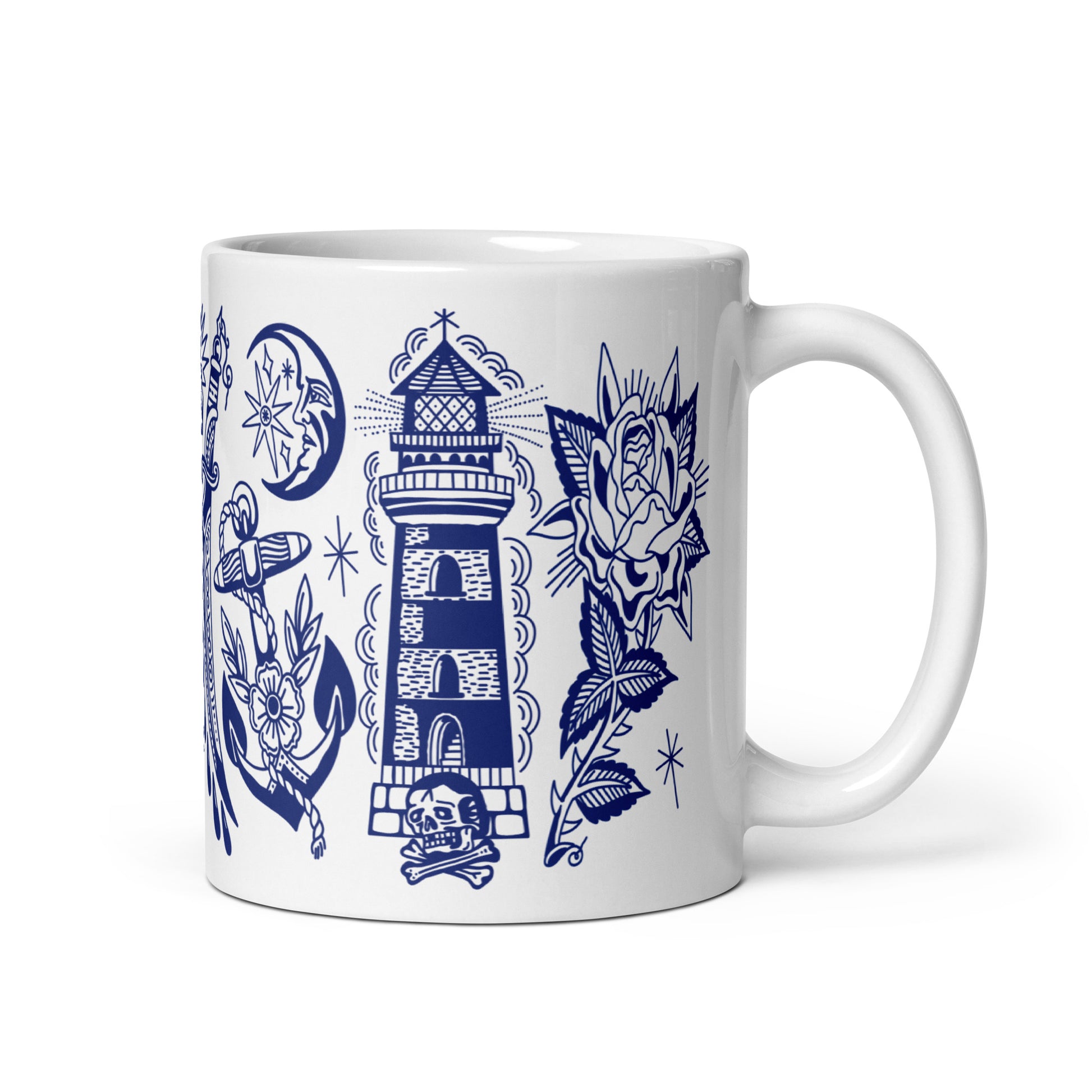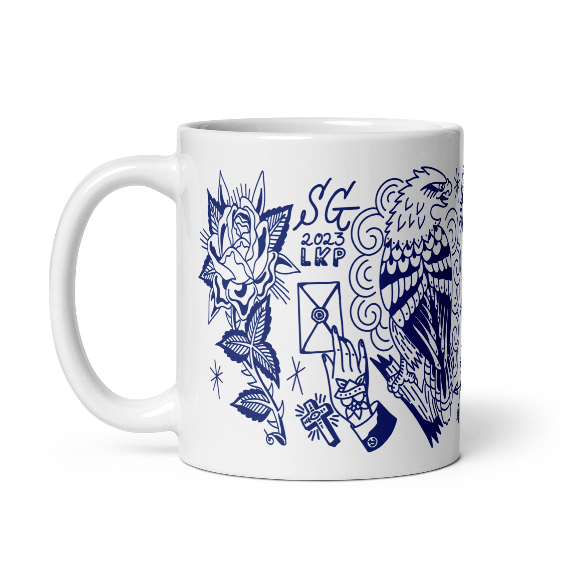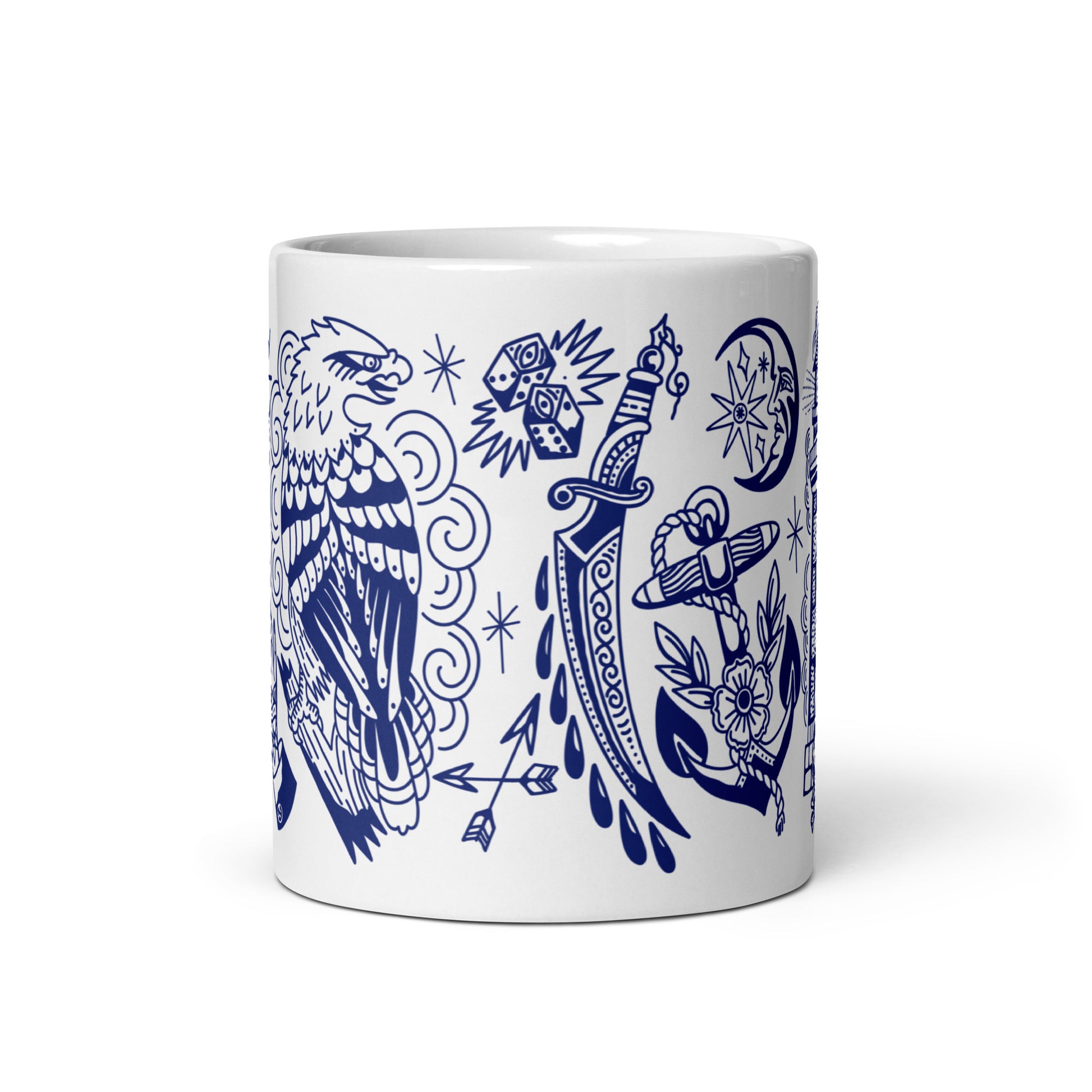 Our exquisitely crafted mugs are the epitome of style and functionality. Its generous capacity ensures ample room for your favorite hot beverages, while the ergonomic handle provides a comfortable grip for effortless enjoyment. Elevate your drinking experience and add a touch of personal tattoo style to your kitchen with this all over design!