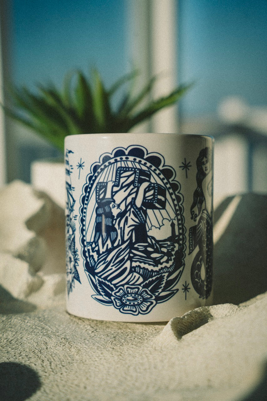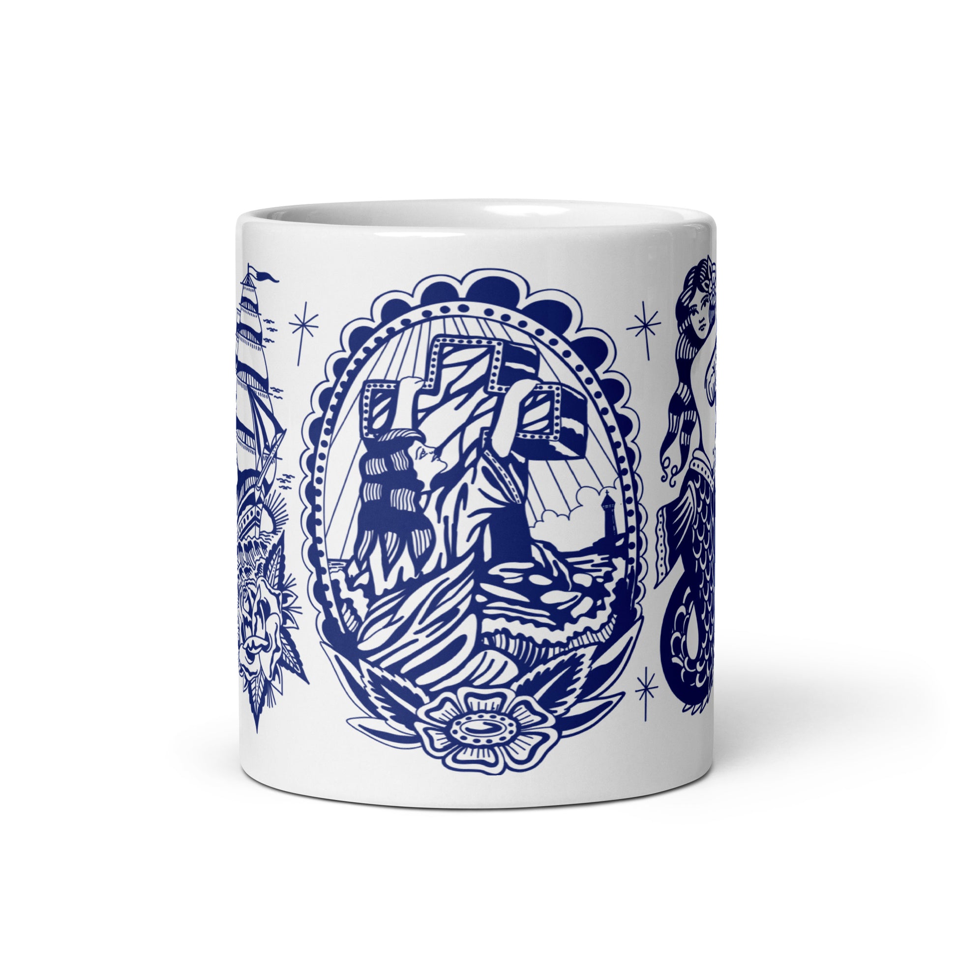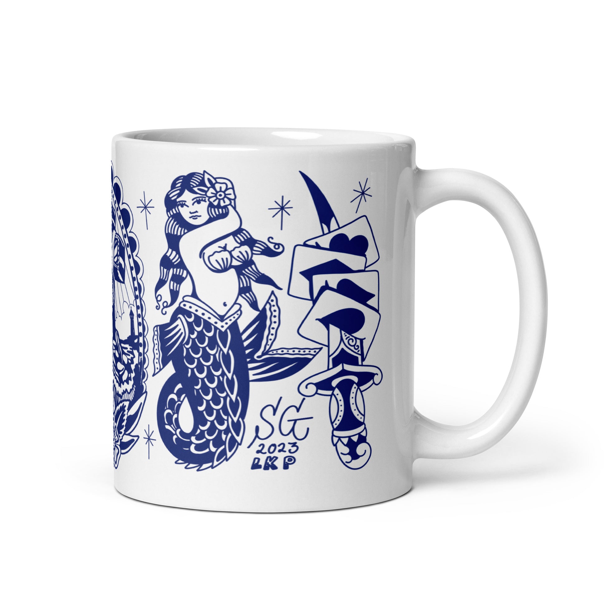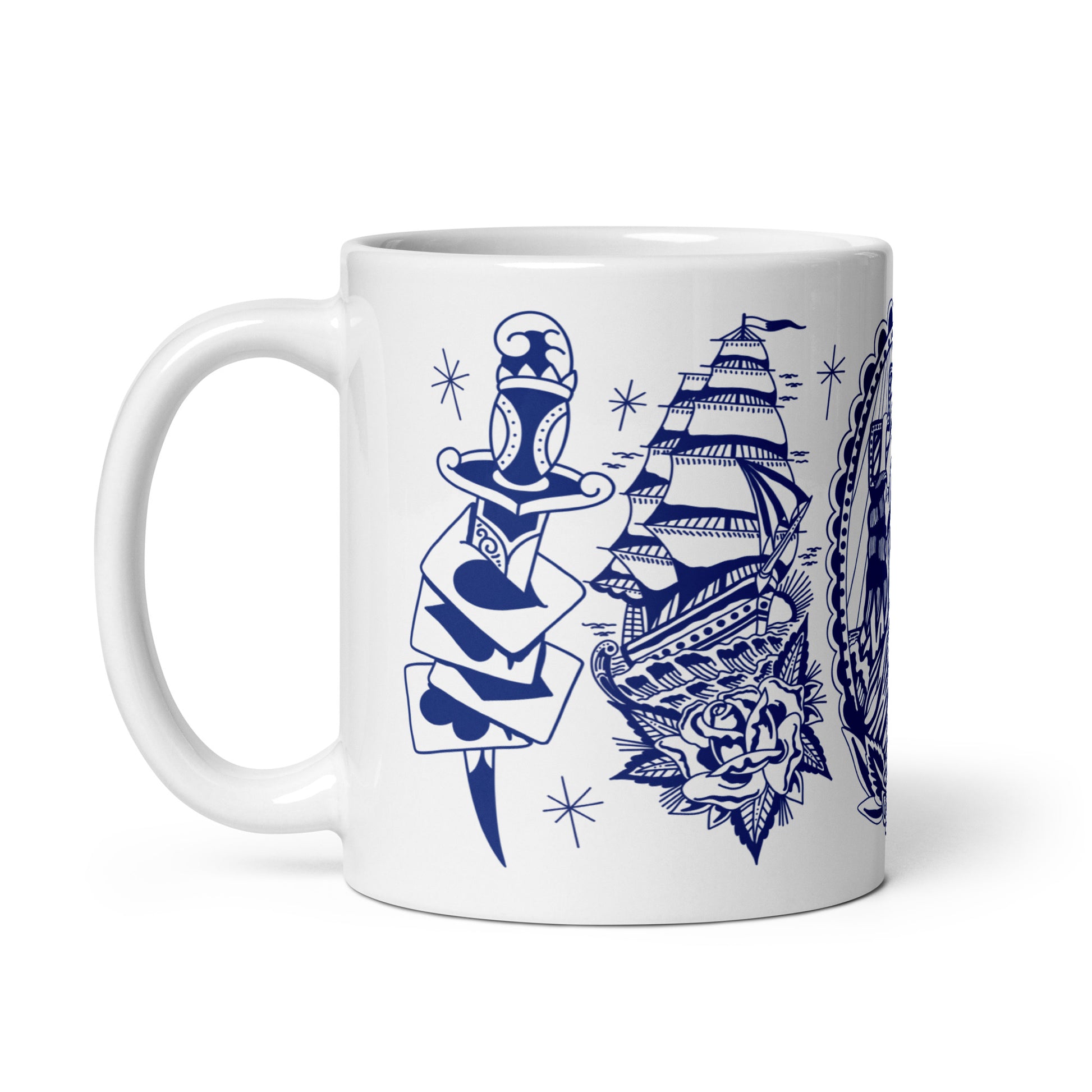 Our exquisitely crafted mugs are the epitome of style and functionality. Its generous capacity ensures ample room for your favorite hot beverages, while the ergonomic handle provides a comfortable grip for effortless enjoyment. Elevate your drinking experience and add a touch of personal tattoo style to your kitchen with this all over design!