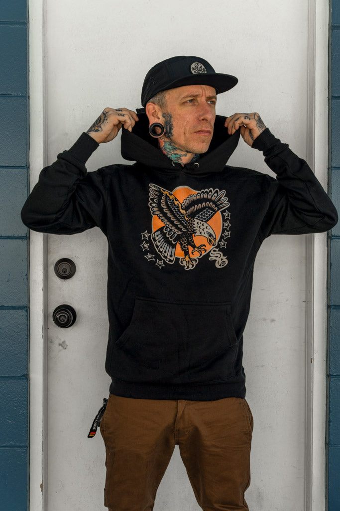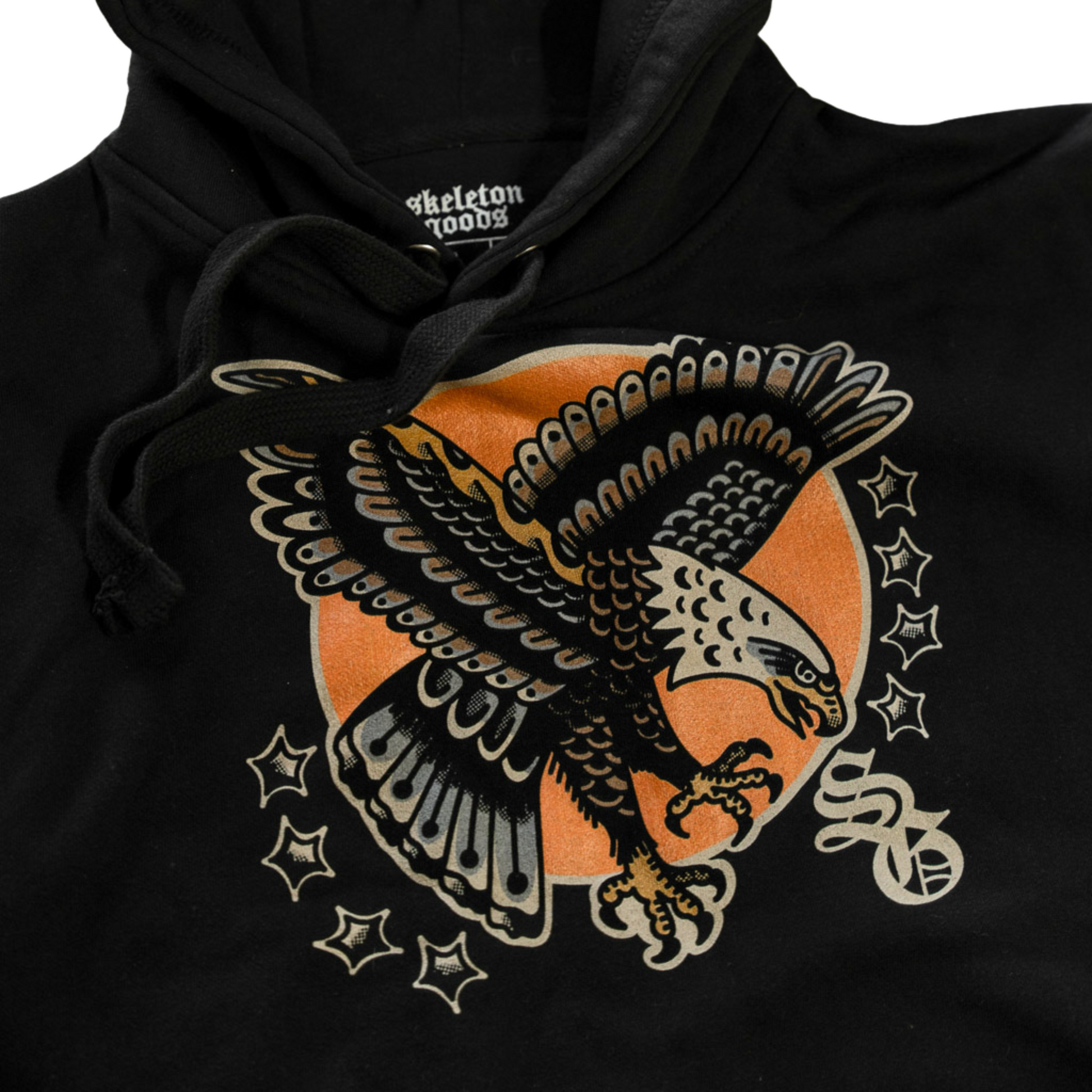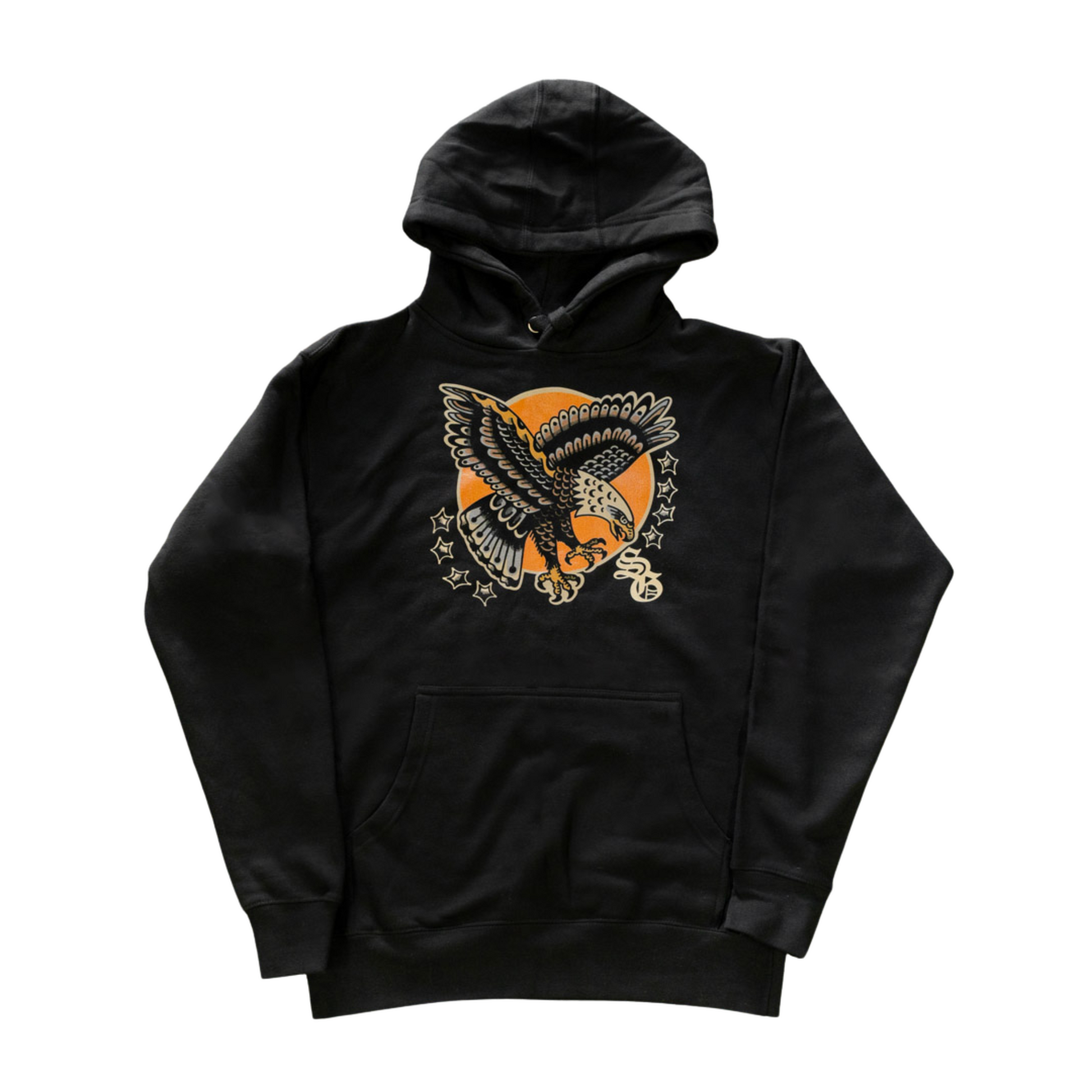 This hoodie combines classic style with contemporary comfort, featuring a striking traditional tattoo Eagle print on the front. Crafted from premium materials, it offers both warmth and durability for everyday wear. The pullover design makes it easy to throw on for any casual occasion, while the hood provides added coziness on chilly days.