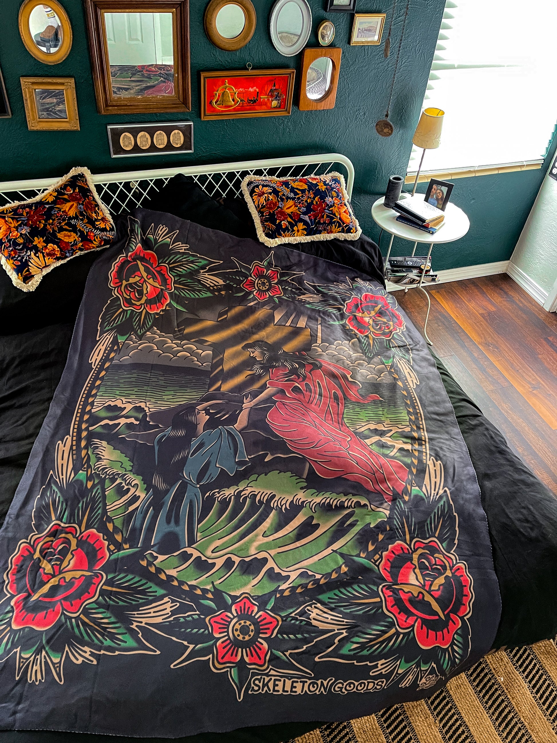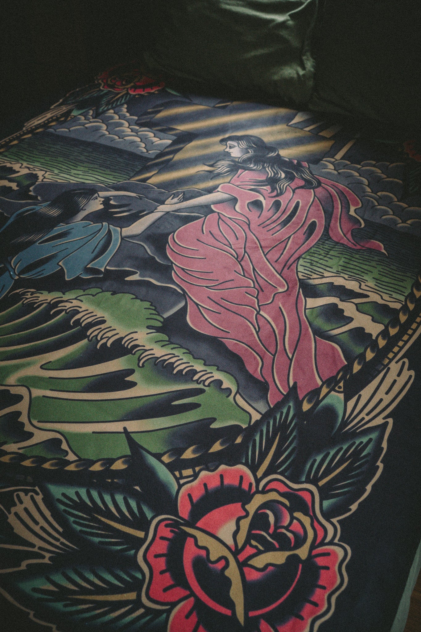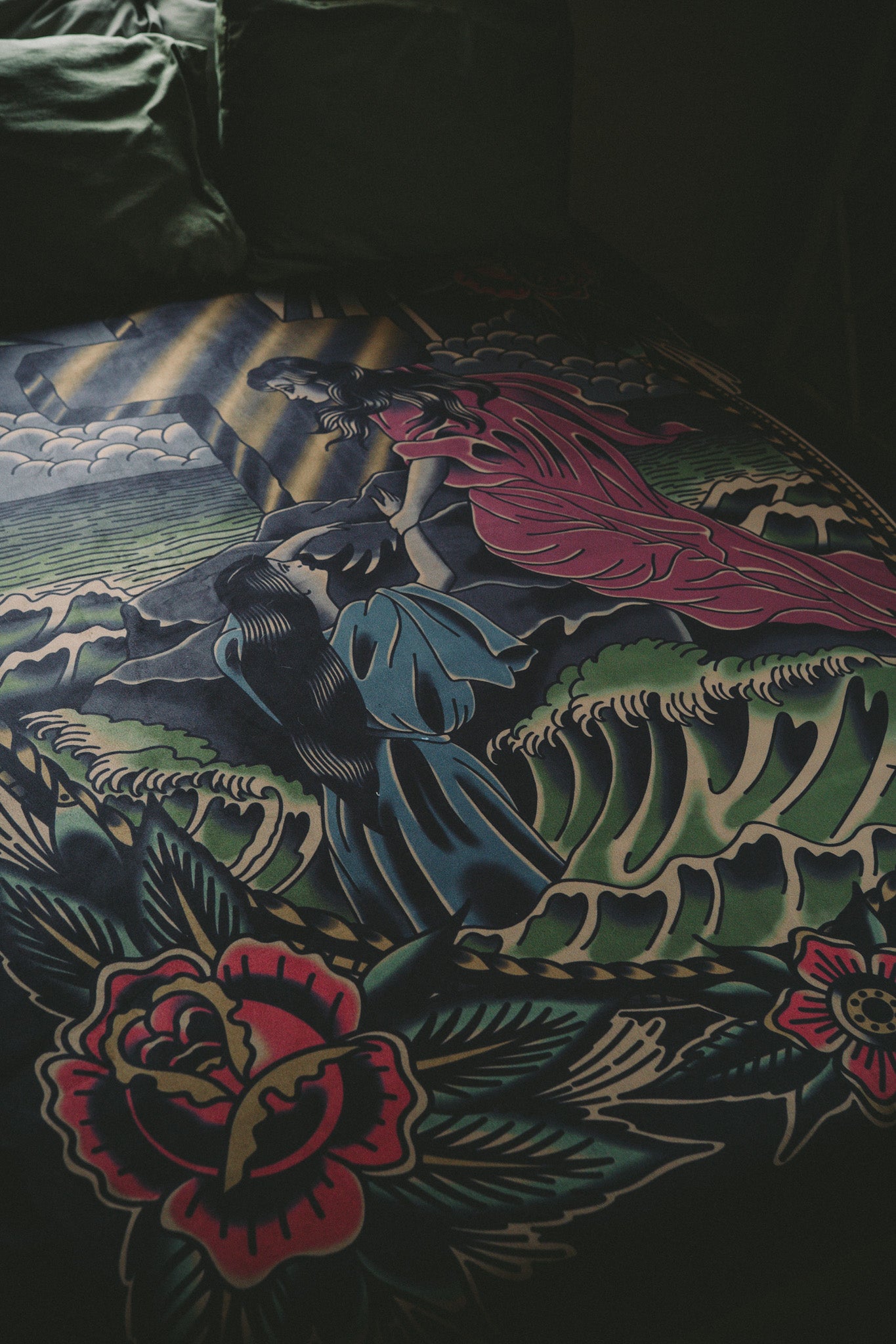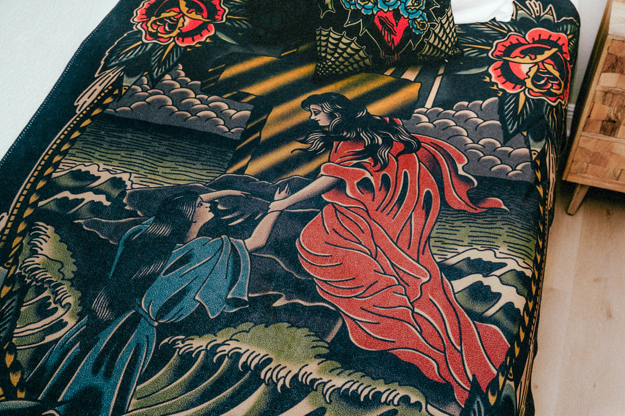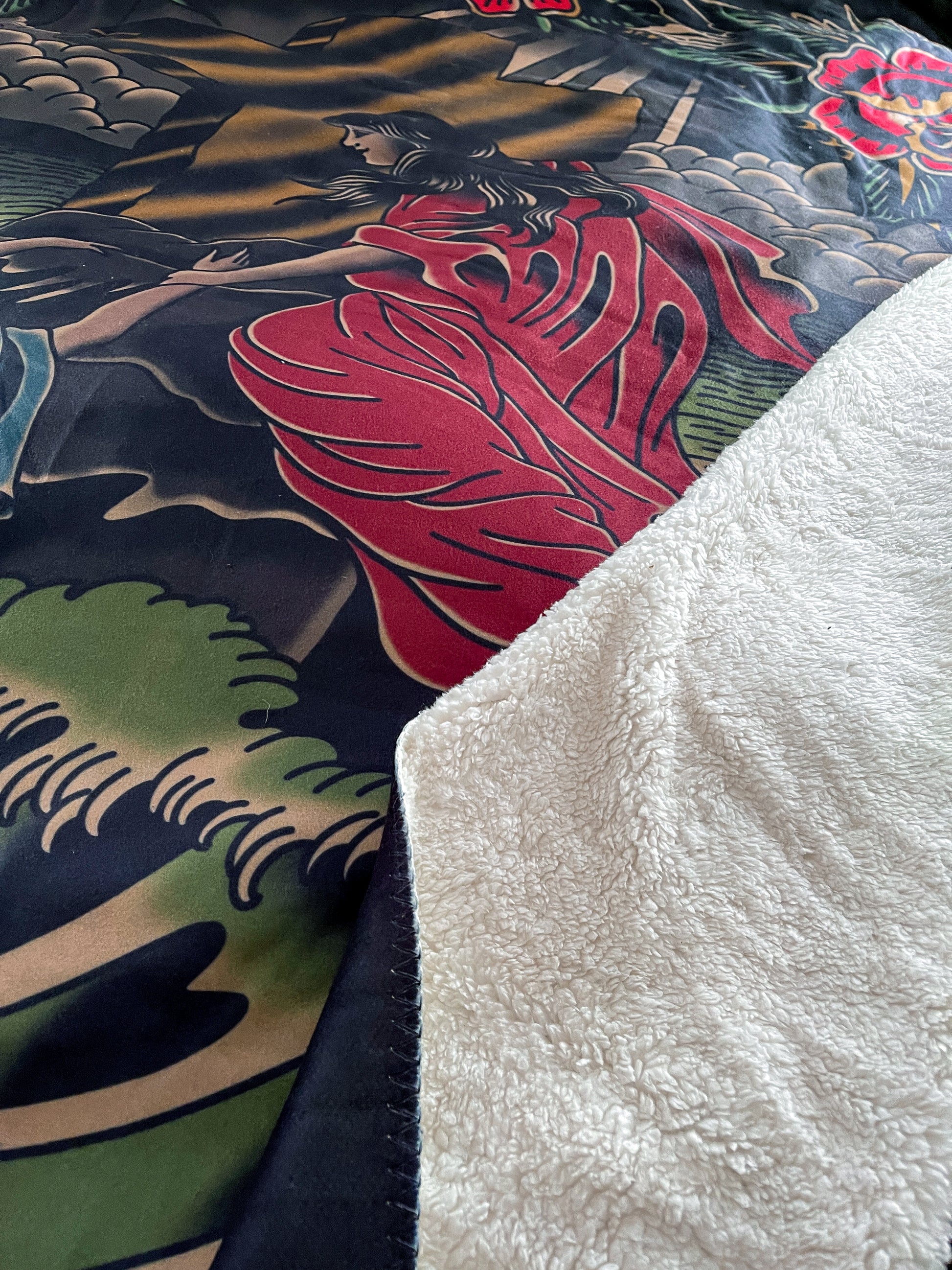 Wrap yourself in warmth and timeless style with our Sherpa-Lined Fleece Blanket! Featuring a classic Bert Grimm design, this blanket brings a touch of vintage charm and personality to your home decor. Whether you're cuddled up on the couch or adding a unique accent to your bedroom, our Sherpa-Lined Fleece Blanket is sure to delight both tattoo enthusiasts and cozy comfort seekers alike.