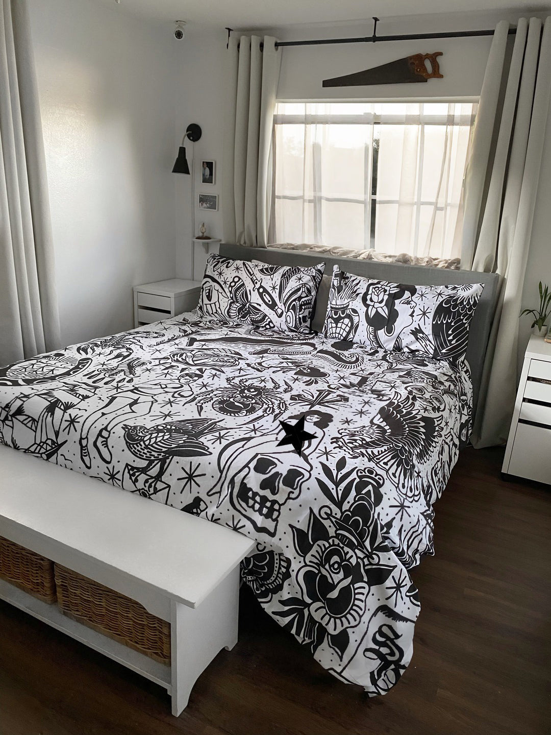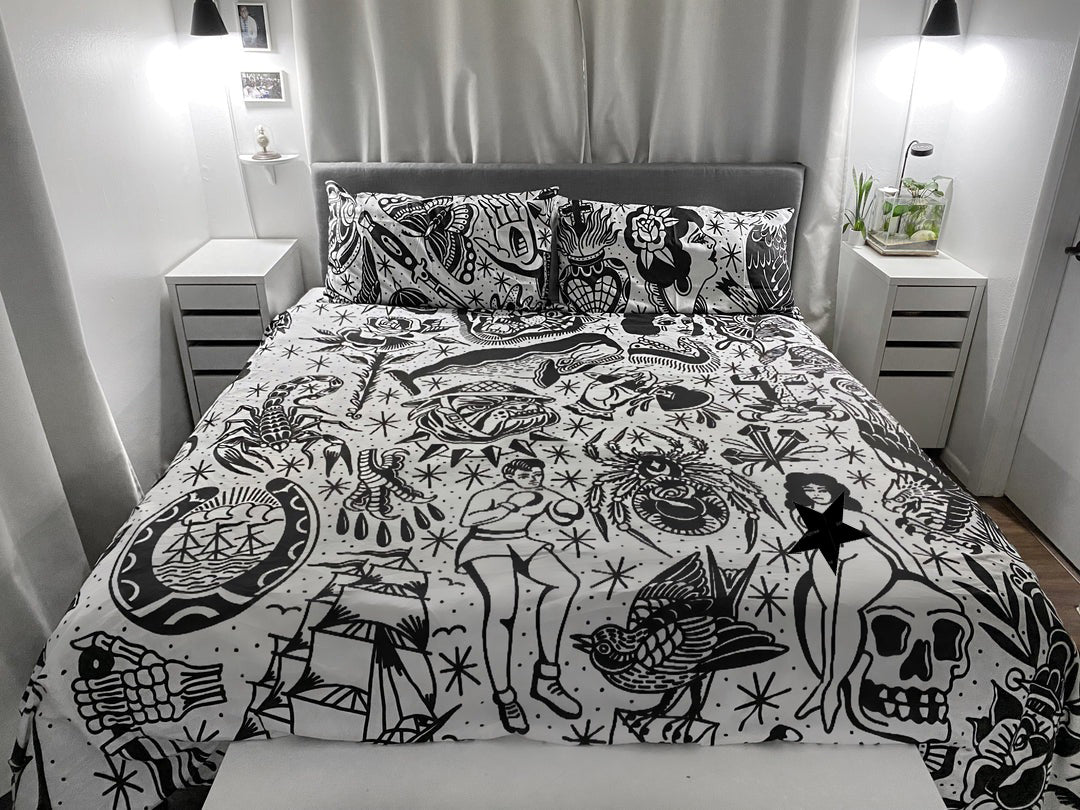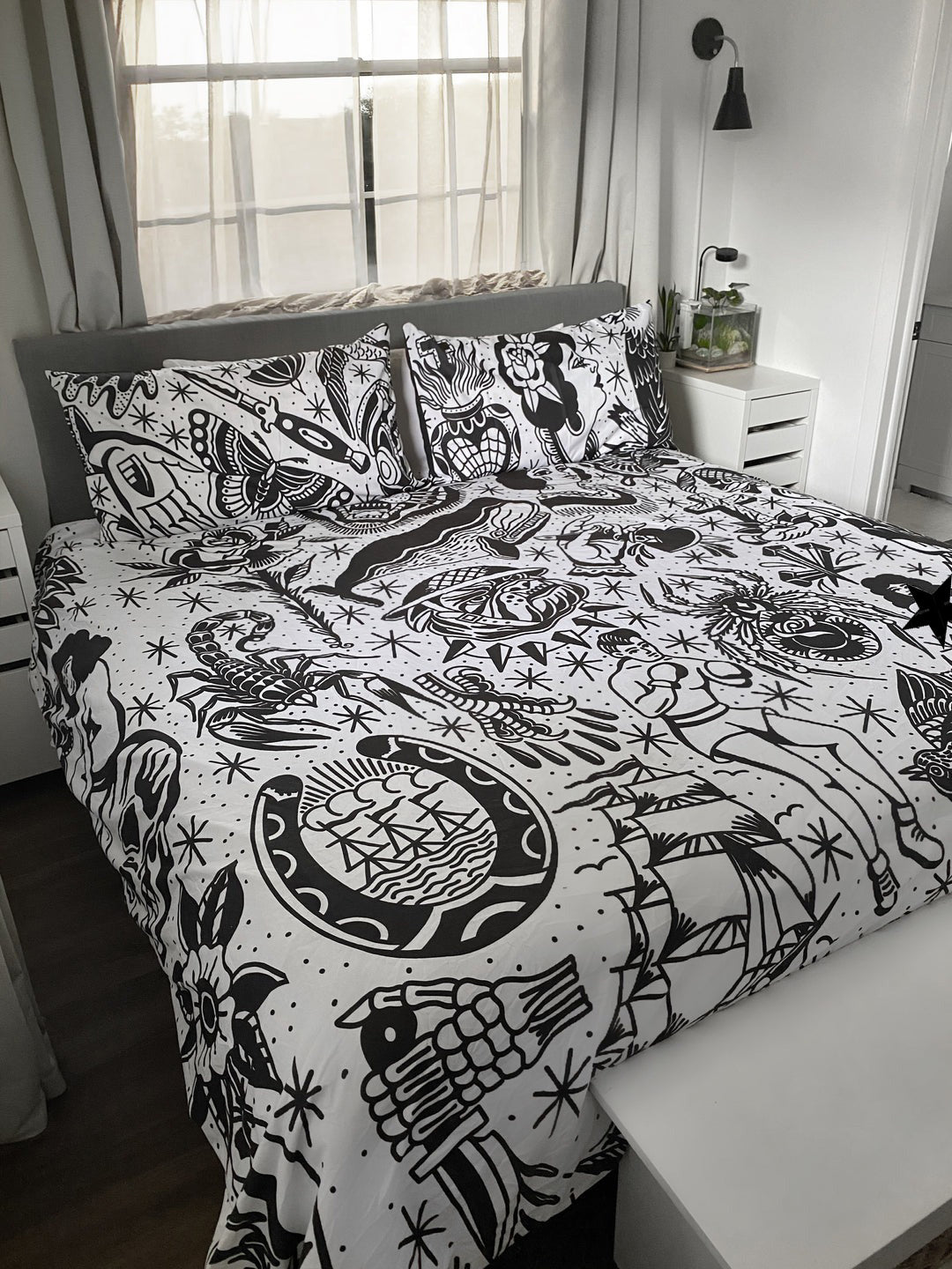Our Black & White Tattoo Flash Collection captures the essence of classic tattooing, featuring bold lines and striking imagery from traditional motifs to contemporary designs. If you're drawn to the simplicity of black ink, its easy to fall in love with these pieces!