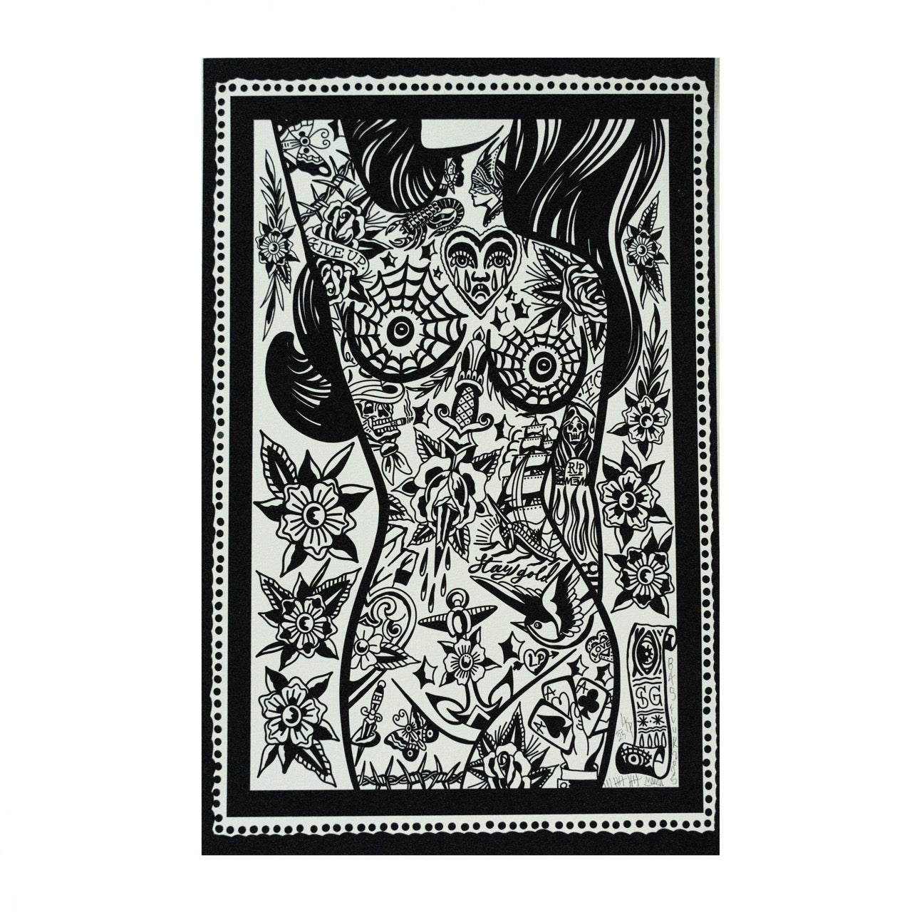 With its captivating tattooed silhouette and modern black and white color scheme, it's no surprise that this print is one of our Best Sellers. If you're drawn to the simplicity of black ink, its easy to fall in love with our Tattooed Man and Lady pieces! Combine this print with our Tattooed Man Print to create a cohesive his and hers set.