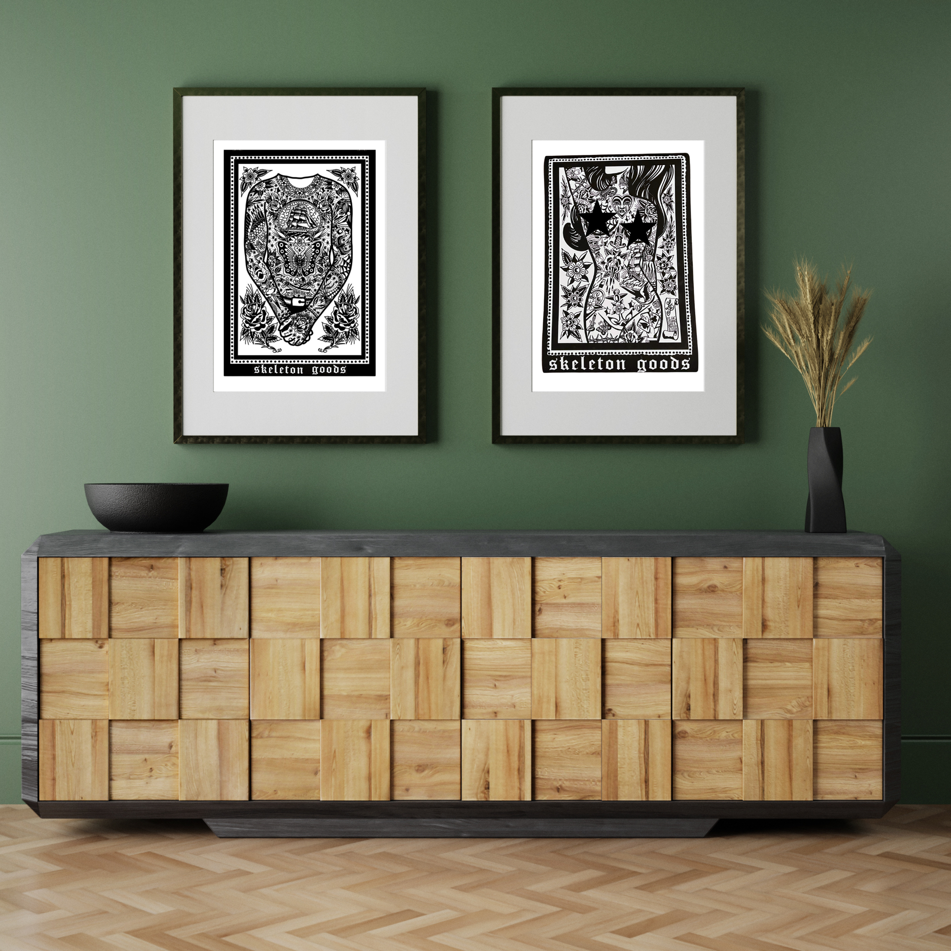 With its captivating tattooed silhouette and modern black and white color scheme, it's no surprise that this print is one of our Best Sellers. If you're drawn to the simplicity of black ink, its easy to fall in love with our Tattooed Man and Lady pieces! Combine this print with our Tattooed Lady Print to create a cohesive his and hers set.